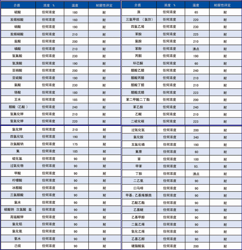 PTFE耐腐蝕性能表