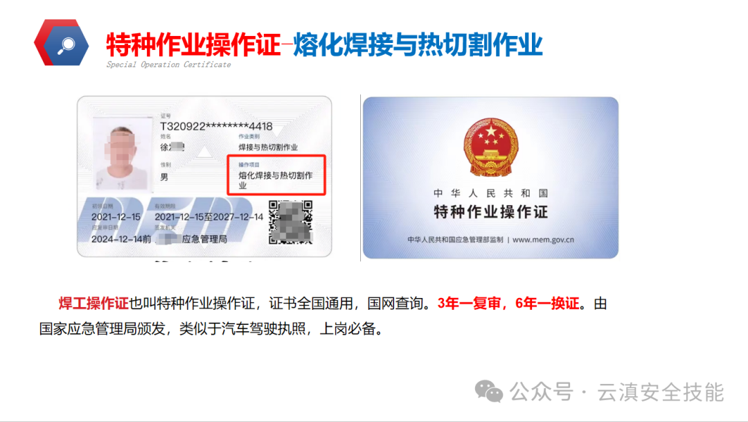 一、報(bào)考工種介紹 低壓電工作業(yè) : 指對1千伏(kV)以下的低壓電器設(shè)備進(jìn)行安裝、調(diào)試、運(yùn)行操作、維護(hù)、檢修、改造施工和試驗(yàn)的作業(yè)。 高處安裝、維護(hù)、拆除作業(yè)(高處作業(yè)):指在高處從事安裝、維護(hù)、拆除的作業(yè)。適用于利用專用設(shè)備進(jìn)行建筑物內(nèi)外裝飾、清潔、裝修,電力、電信等線路架設(shè),高處管道架設(shè),小型空調(diào)高處安裝、維修,各種設(shè)備設(shè)施與戶外廣告設(shè)施的安裝、檢修、維護(hù)以及在高處從事建筑物、設(shè)備設(shè)施拆除作業(yè)。 高壓電工作業(yè) : 指對1千伏(kV)及以上的高壓電氣設(shè)備進(jìn)行運(yùn)行、維護(hù)、安裝、檢修、改造、施工、調(diào)試、試驗(yàn)及絕緣工、器具進(jìn)行試驗(yàn)的作業(yè)。 熔化焊接與熱切割作業(yè):指使用局部加熱的方法將連接處的金屬或其他材料加熱至熔化狀態(tài)而完成焊接與切割的作業(yè)。適用于氣焊與氣割、焊條電弧焊與碳弧氣刨、埋弧焊、氣體保護(hù)焊、等離子弧焊、電渣焊、電子束焊、激光焊、氧熔劑切割、激光切割、等離子切割等作業(yè)。 二、報(bào)考流程 準(zhǔn)備報(bào)名資料 1、身份證正反面照片 2、中或初中以上畢業(yè)證照片(沒畢業(yè)證的提供戶口本本人頁照片) 3、電子版白底照片 4、個(gè)人健康承諾書(本人簽字按手印) 5、特種作業(yè)人員取證申請表(本人簽字按手印) 提交資料報(bào)名 線上發(fā)資料報(bào)名或到線下現(xiàn)場報(bào)名,獲取報(bào)名點(diǎn)定位聯(lián)系范老師 學(xué)習(xí)平臺 報(bào)名后開通網(wǎng)課、題庫在線上學(xué)習(xí) 培訓(xùn) 考前集中培訓(xùn):安全技術(shù)知識+實(shí)際操作技能培訓(xùn) 考試 考試?yán)碚?實(shí)操,均為80分合格,理論為機(jī)考,題型為判斷題和選擇題;實(shí)操采取現(xiàn)場實(shí)際操作或者仿真模擬操作等方式進(jìn)行 報(bào)名咨詢:18213392517 范老師
